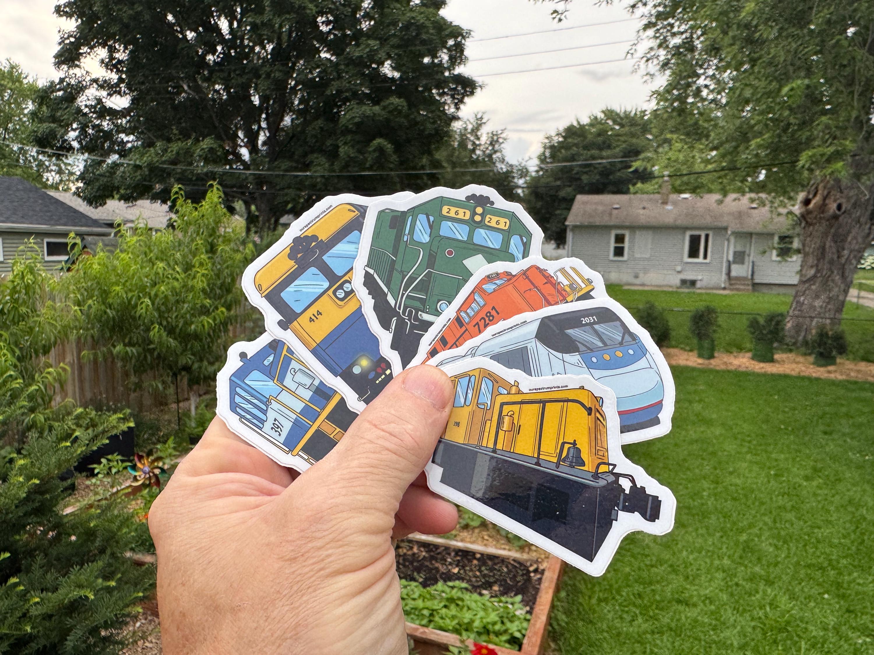 Train Sticker Packs. Choose your pack of high quality unique train stickers. You will likely not find stickers like these anywhere else.