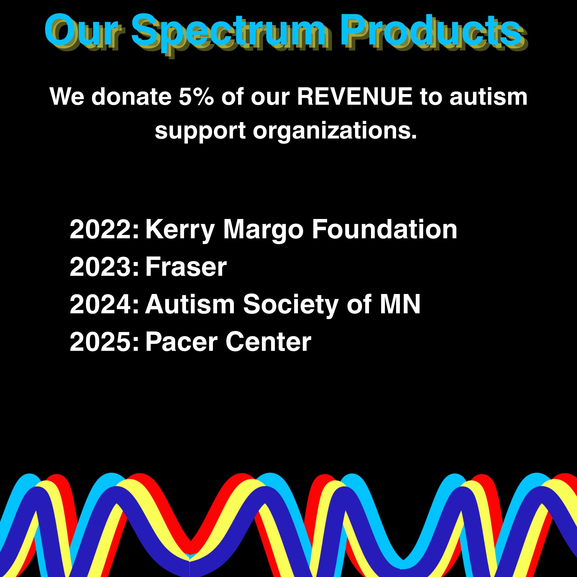 5% of proceeds are donated to Autism related organizations