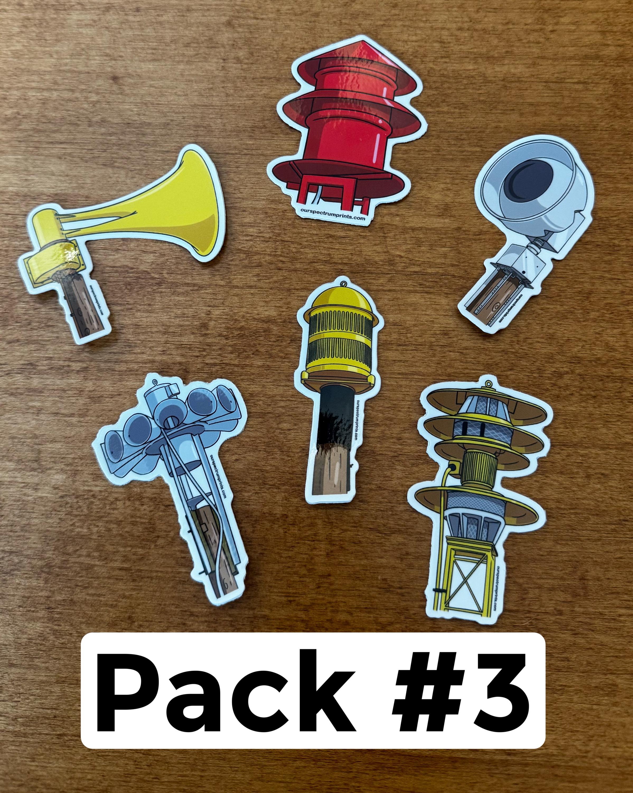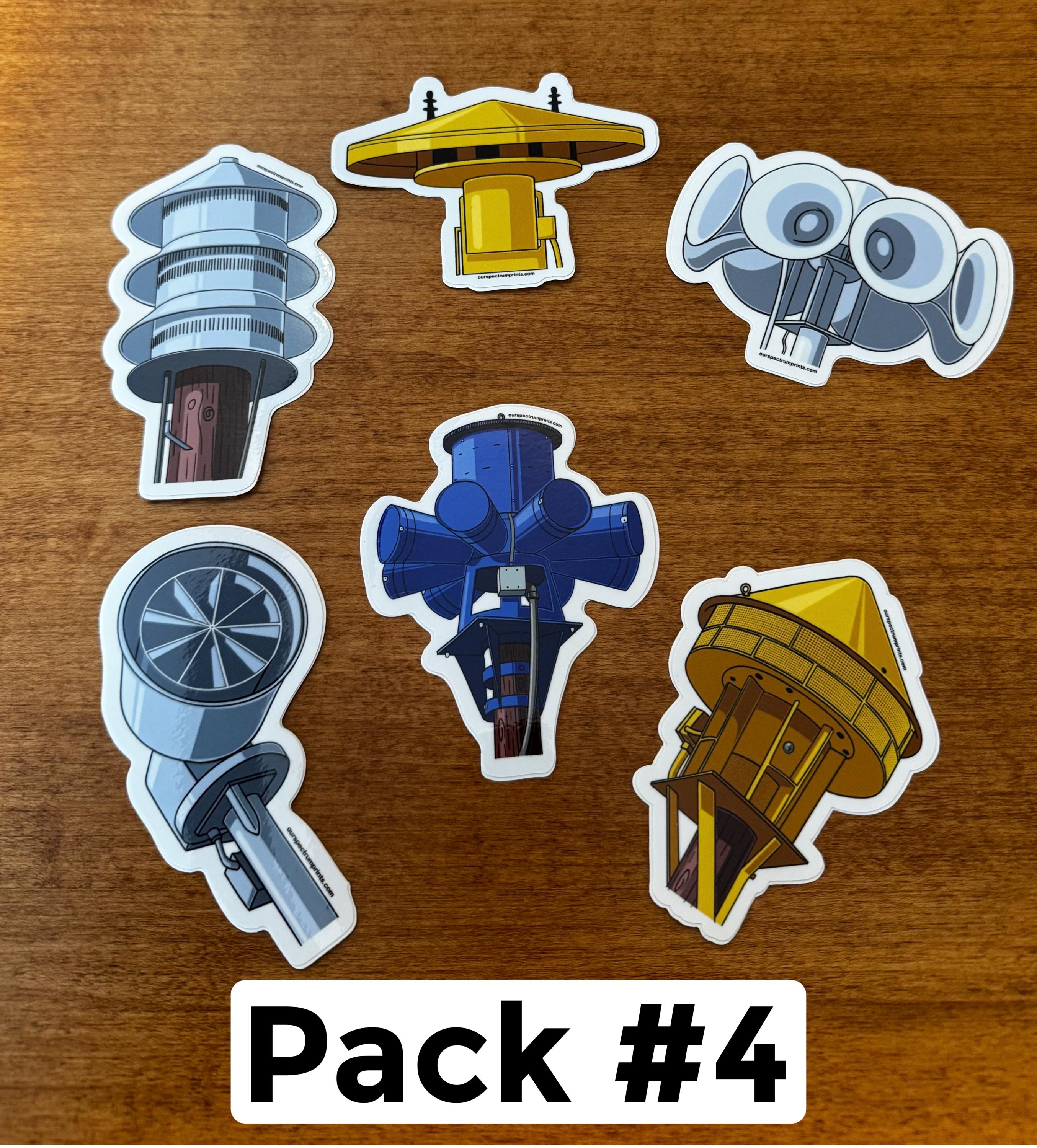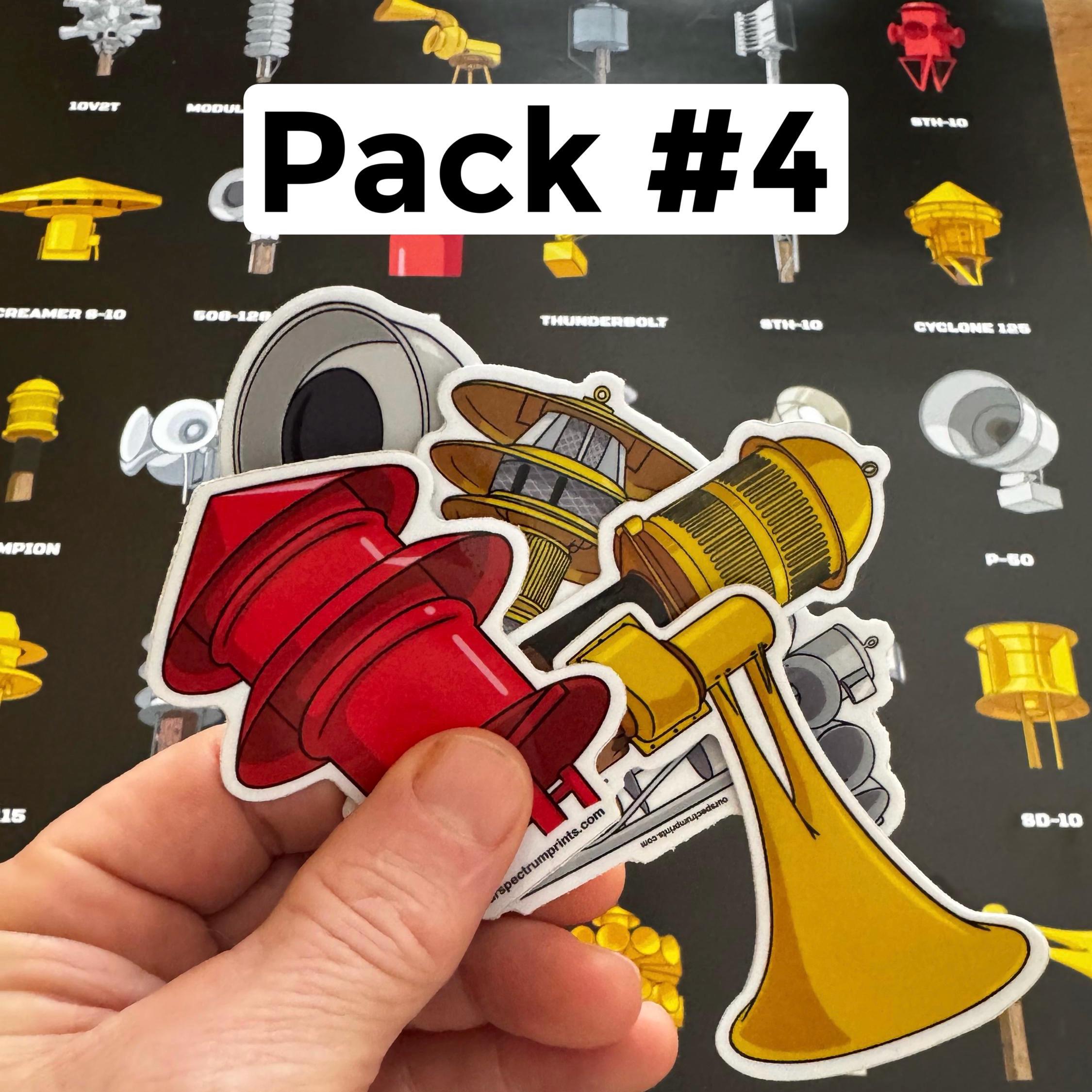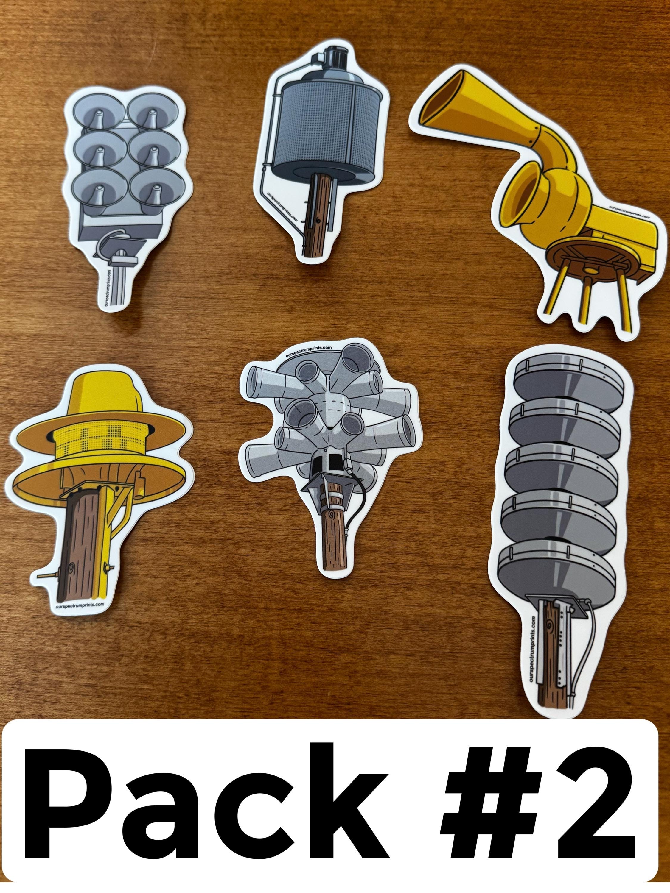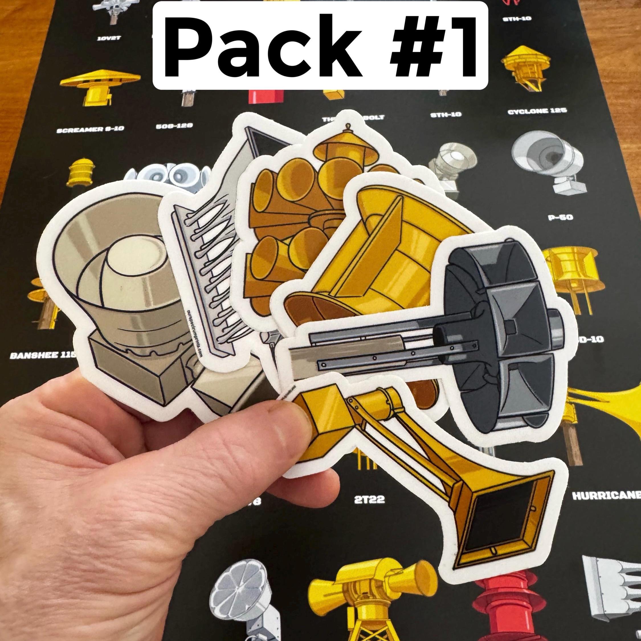 Tornado Siren Sticker Packs. Quality 3-4” vinyl stickers. Available in packs of 6. Some of these tornado sirens are rare, but all are cool!