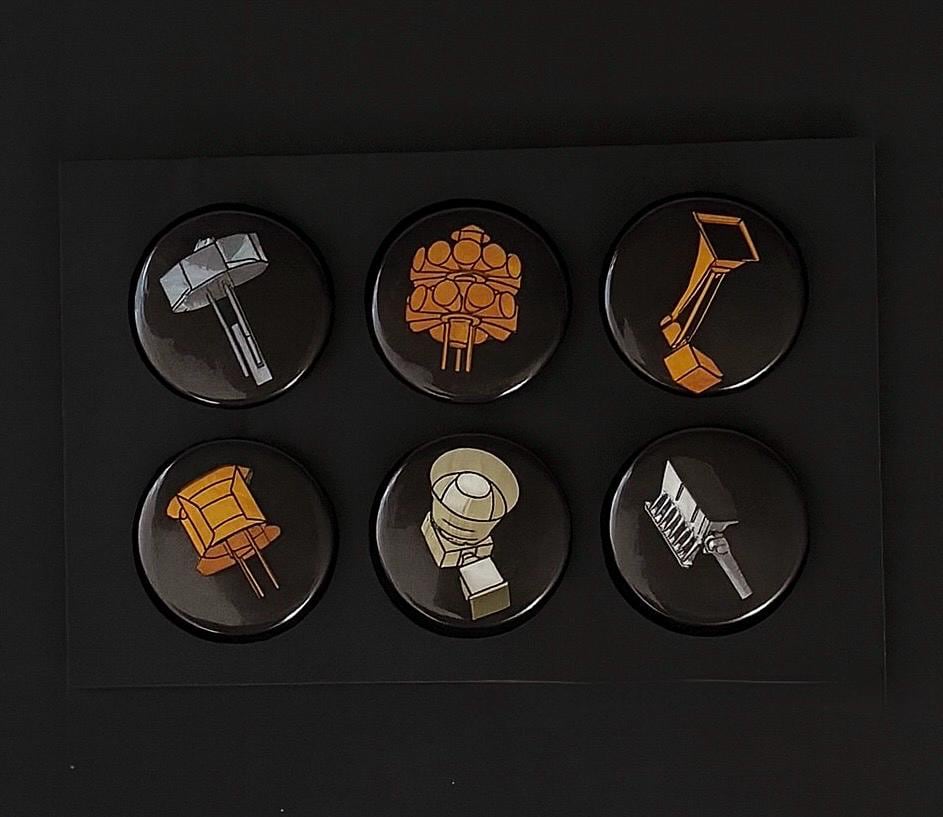 This pack includes six(6) 1.5” pin-back buttons of our original illustrated sirens - including the Thunderbolt!