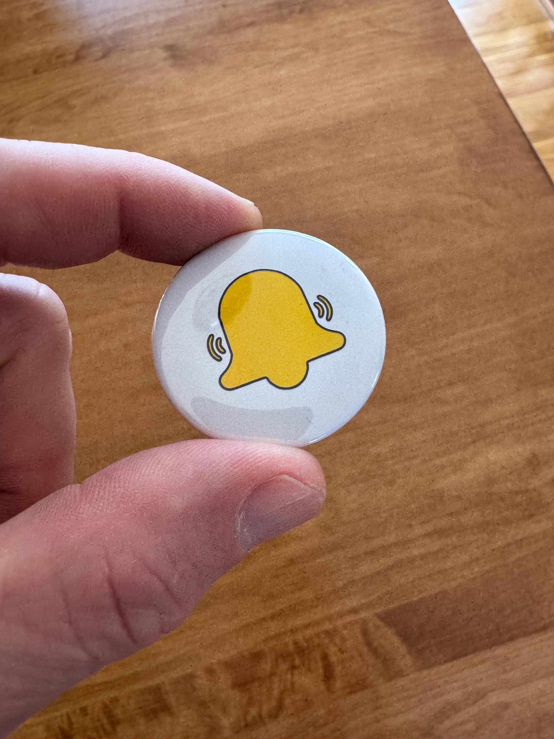 Made these buttons ourselves at our dining room table.