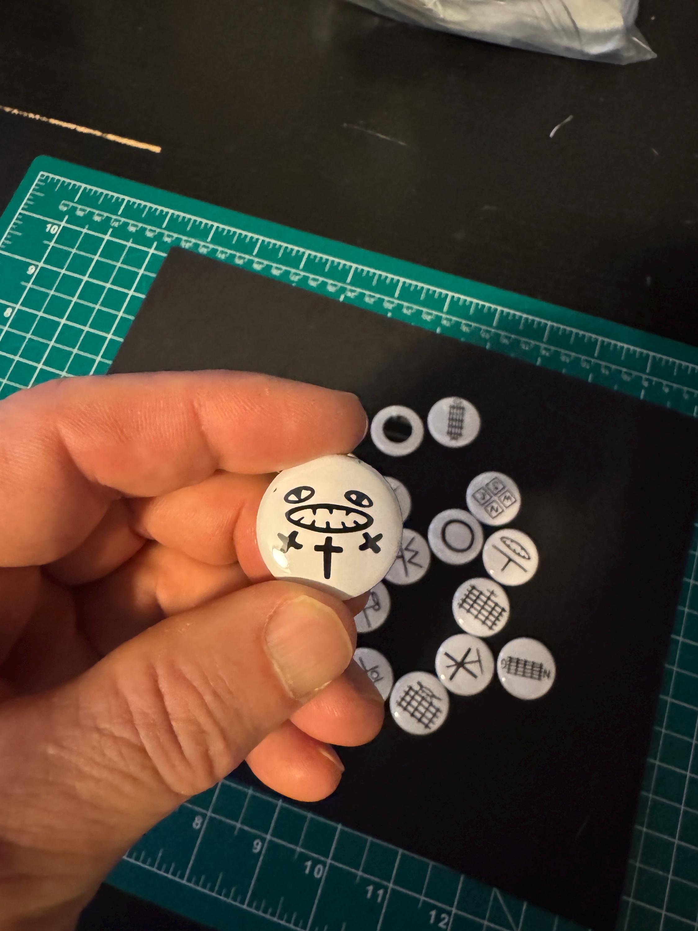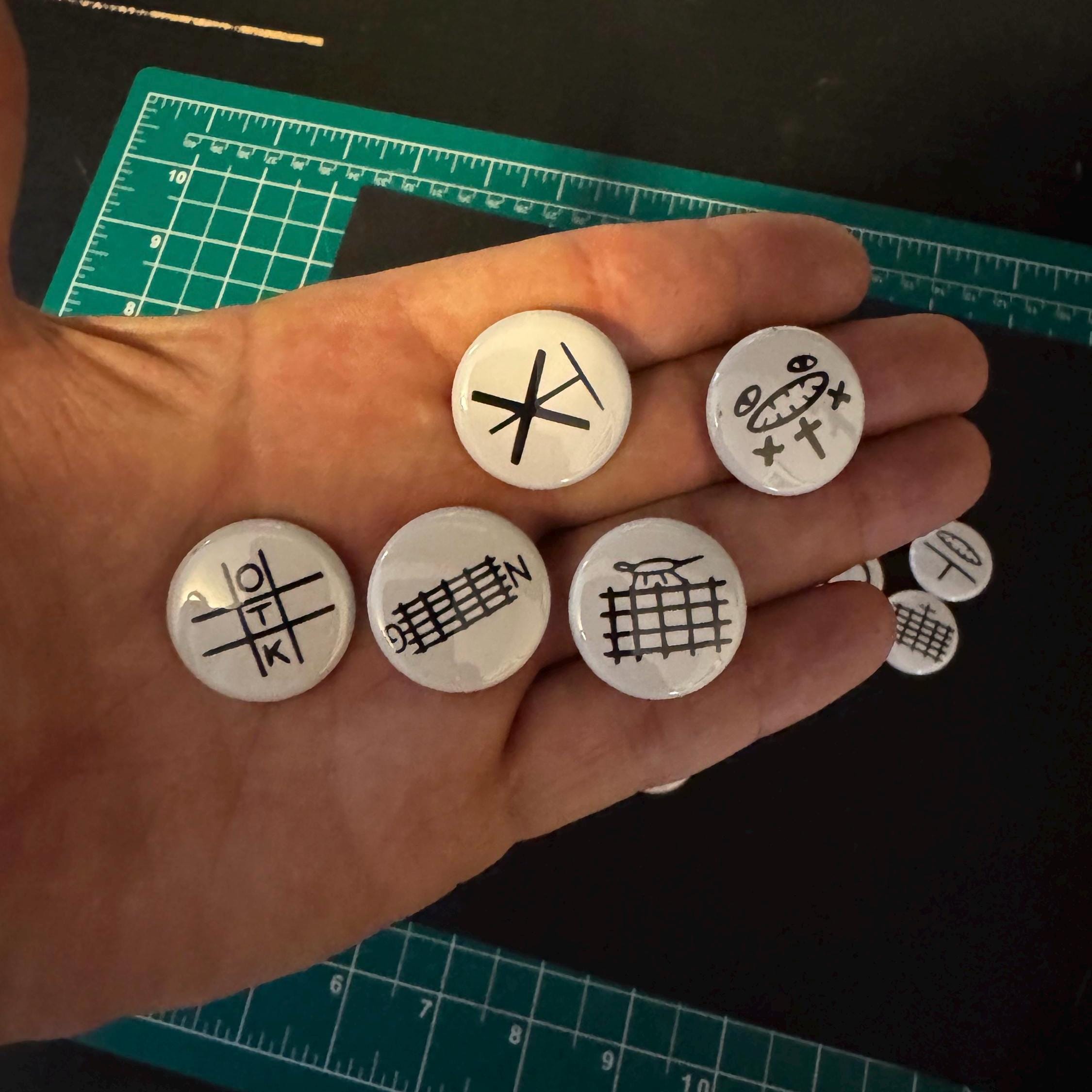 All buttons are 1” round with a strong ceramic magnet back.