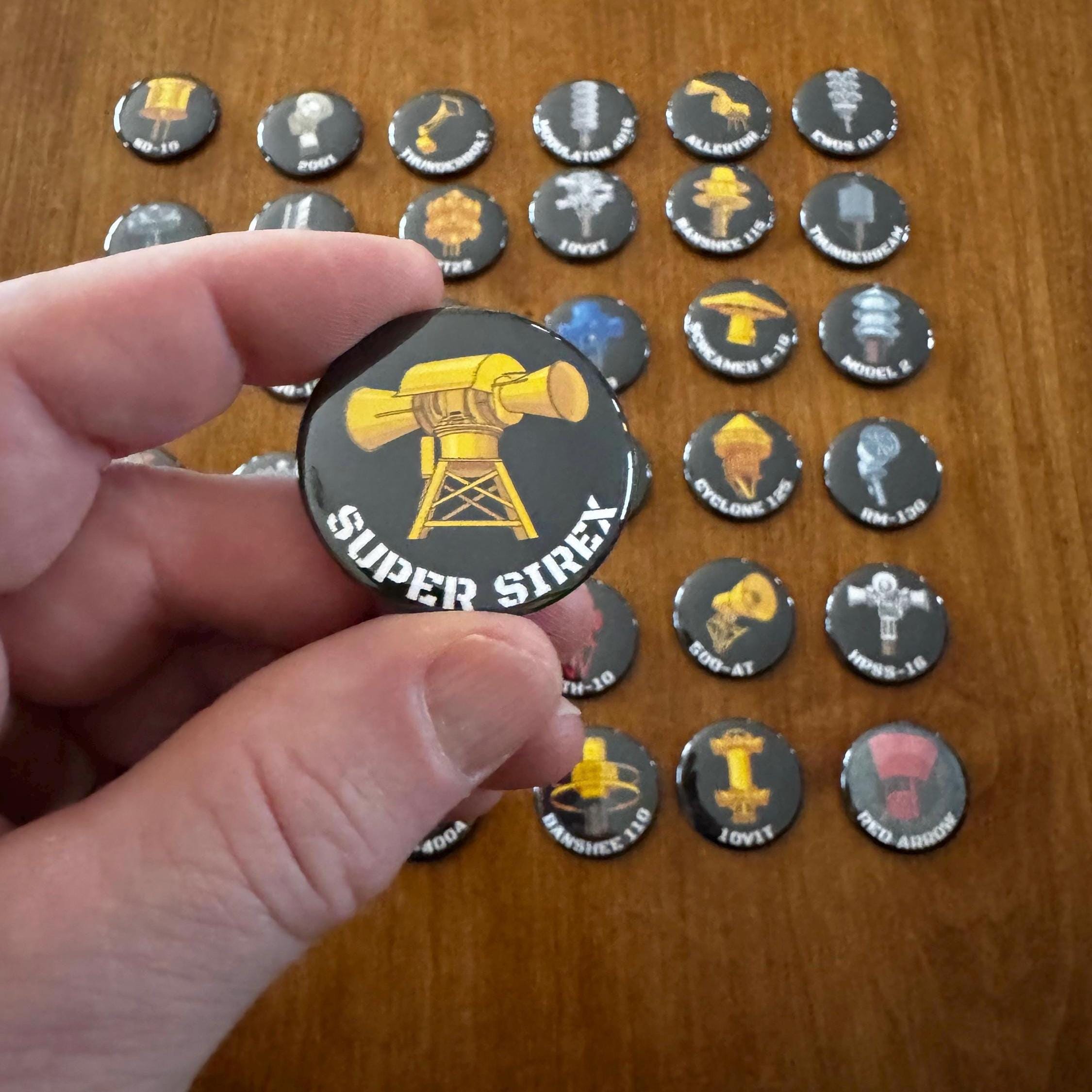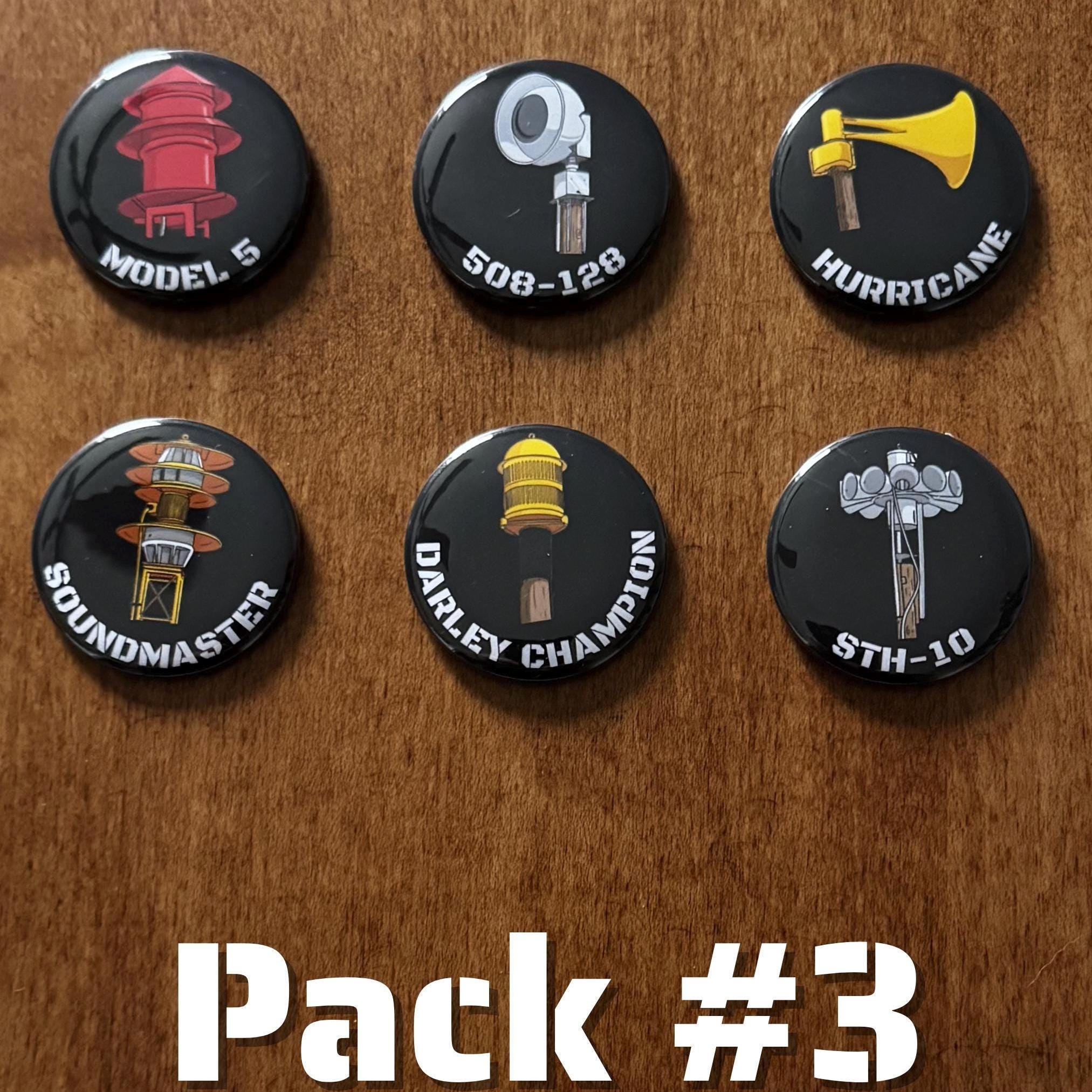 1.5” round Tornado Siren magnet packs! Available in packs of 6 or entire pack of 36. Collect all these tornado siren button magnets.